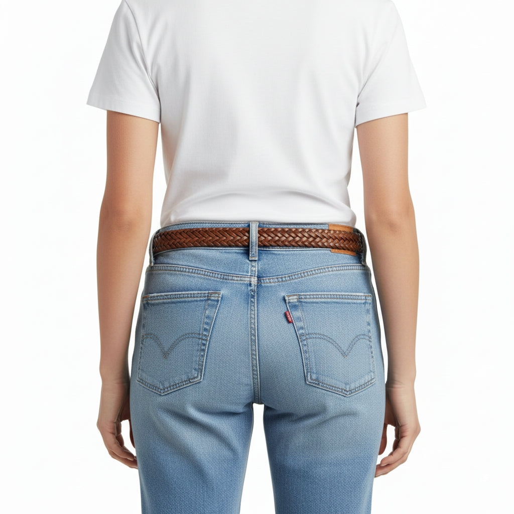 BELTLEY Handwoven Brown Full-Grain Leather Belt for Women