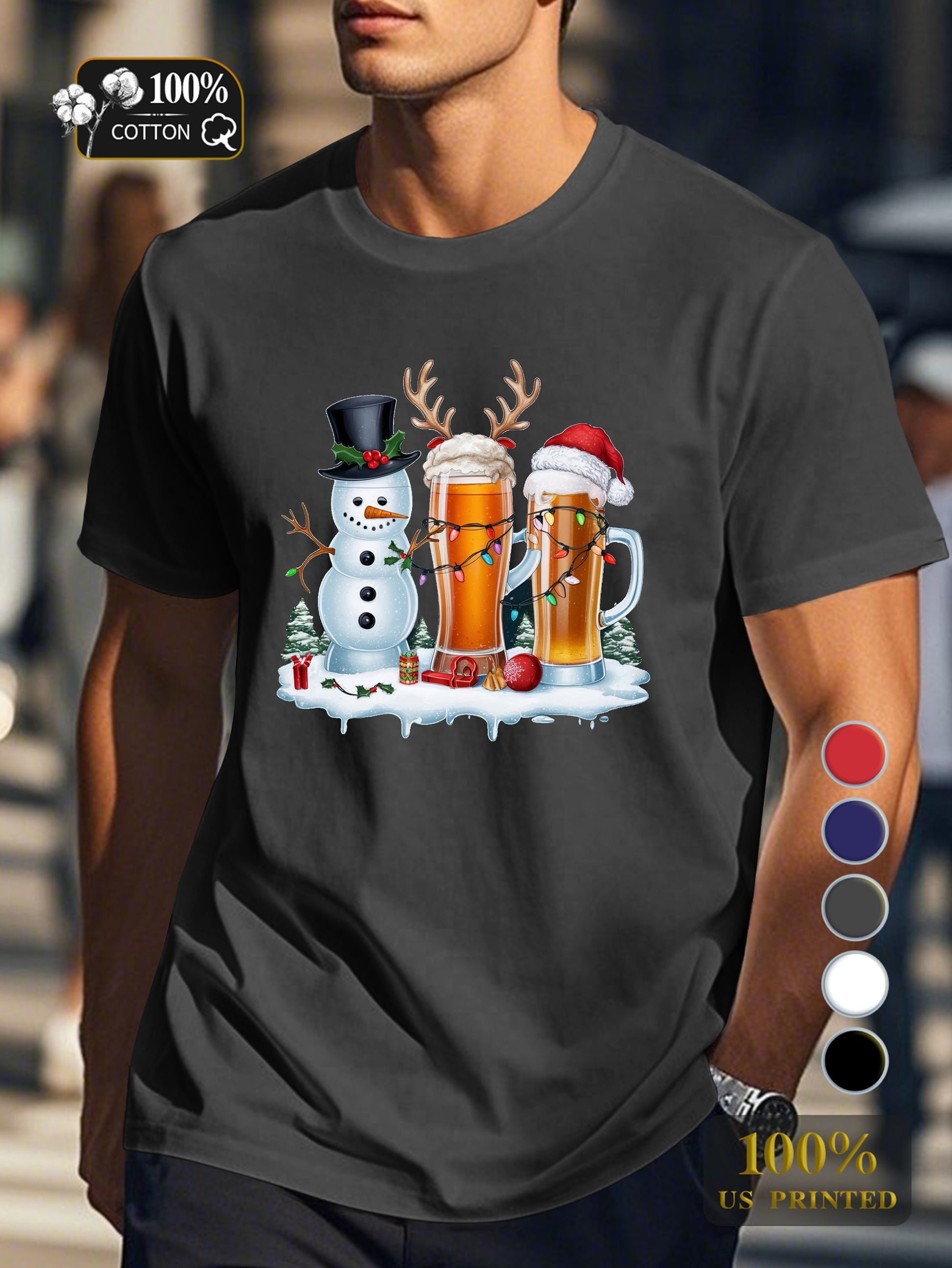 Holiday themed beer glasses Men's pure cotton Tshirt Comfort Fit
