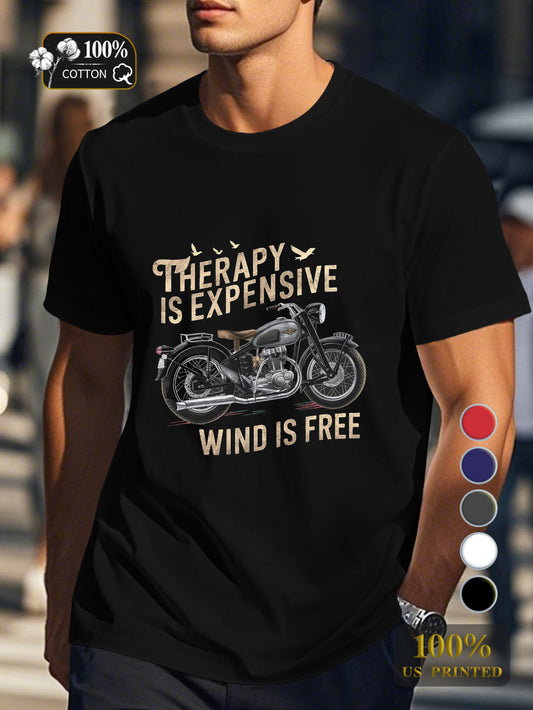 THERAPY IS EXPENSIVE WIND IS FREE Men's pure cotton Tshirt Comfort Fit