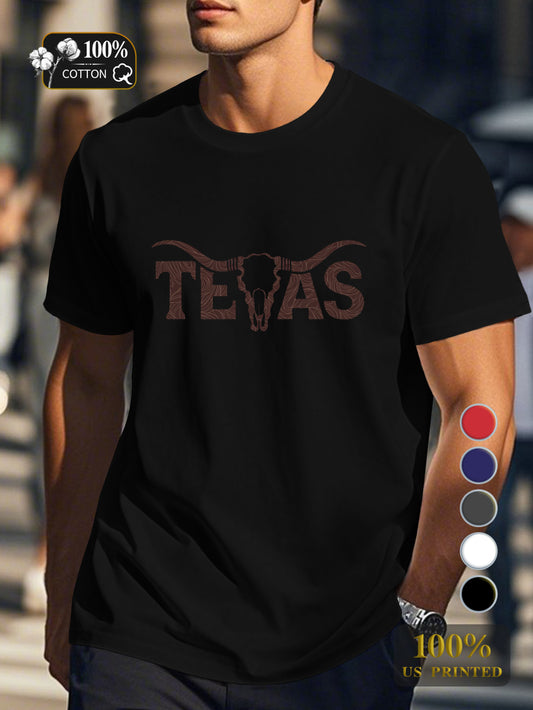 TEXAS with longhorn skull Men's pure cotton Tshirt Comfort Fit