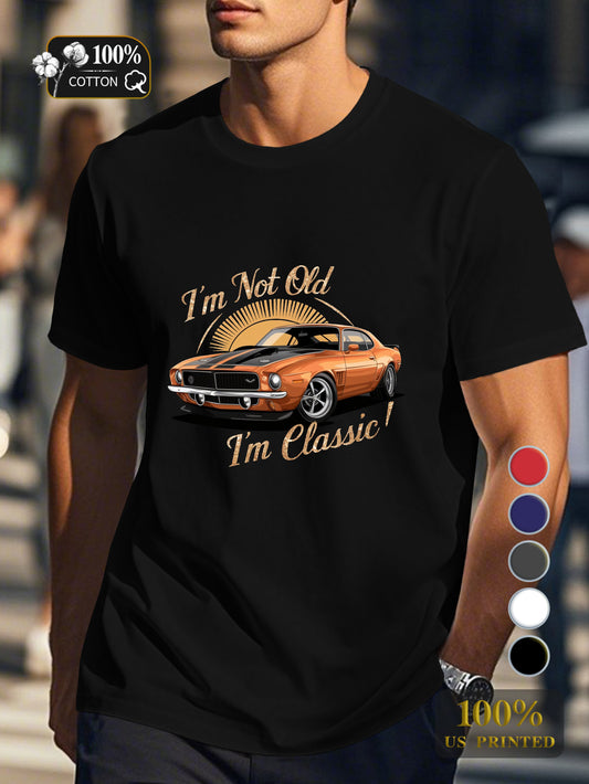 vintage orange muscle car Men's pure cotton Tshirt Comfort Fit