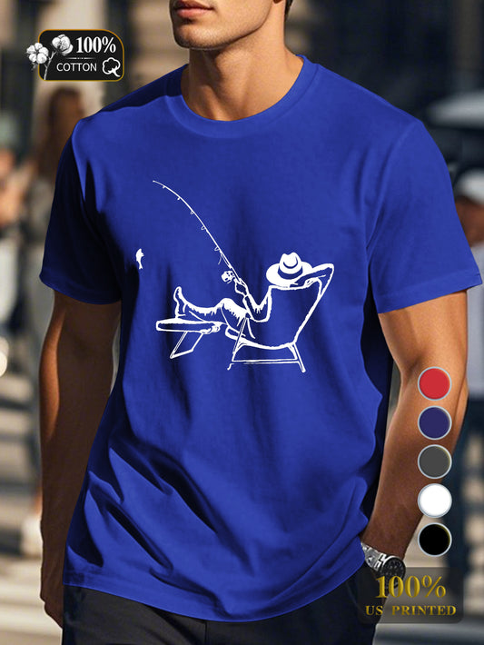 serene fishing scene Men's pure cotton Tshirt Comfort Fit