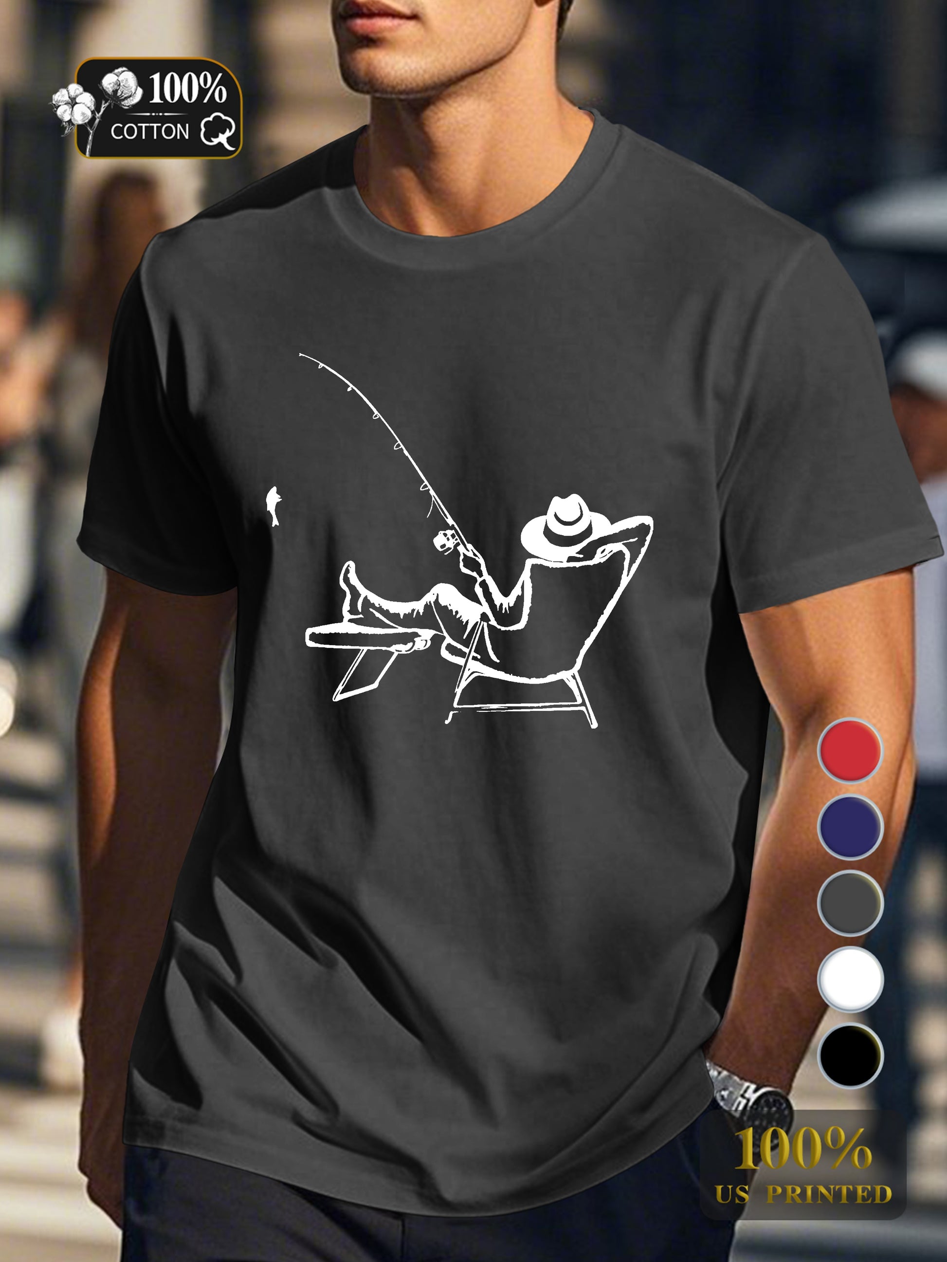 serene fishing scene Men's pure cotton Tshirt Comfort Fit